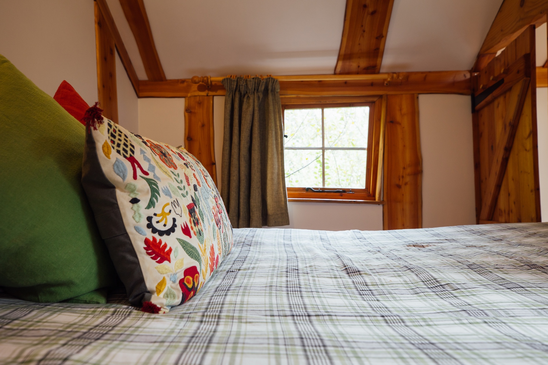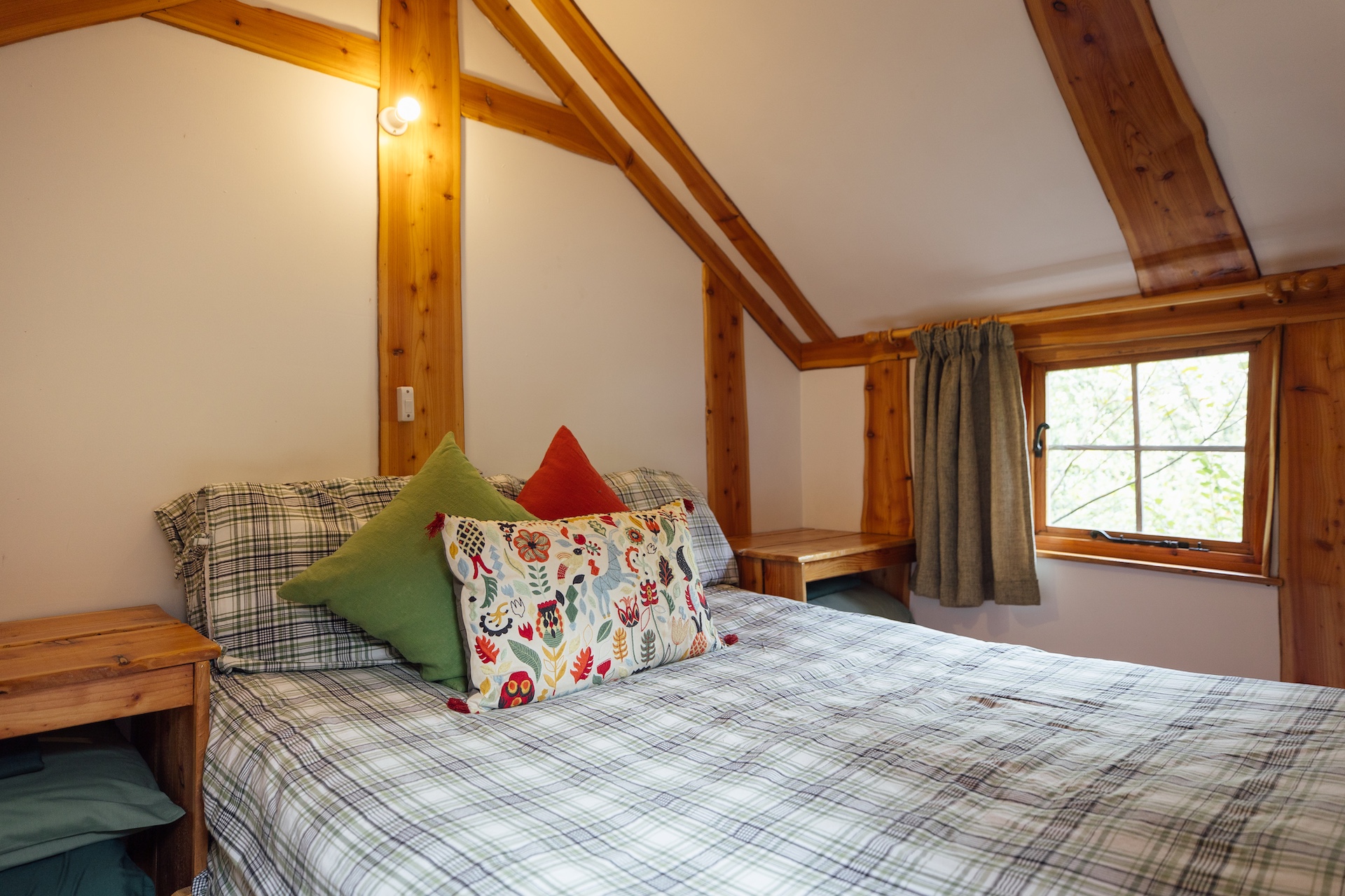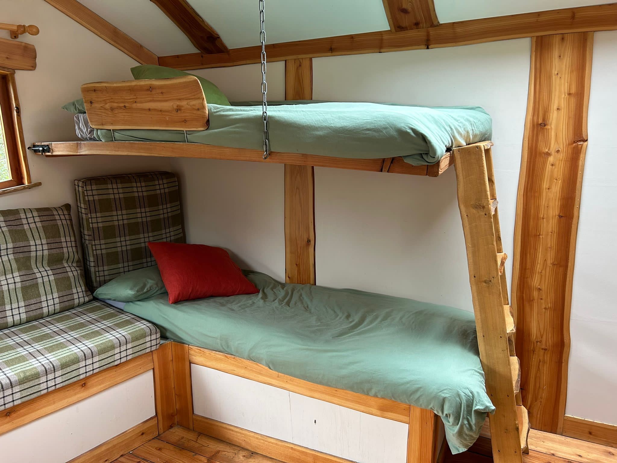 The sleeping arrangements are one private bedroom with a double bed and 3 space-saving single bed options in the communal living area (please note Pyatt's Nest accommodates a maximum of two adults).
