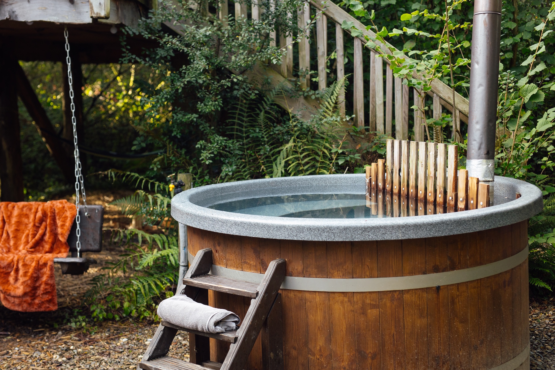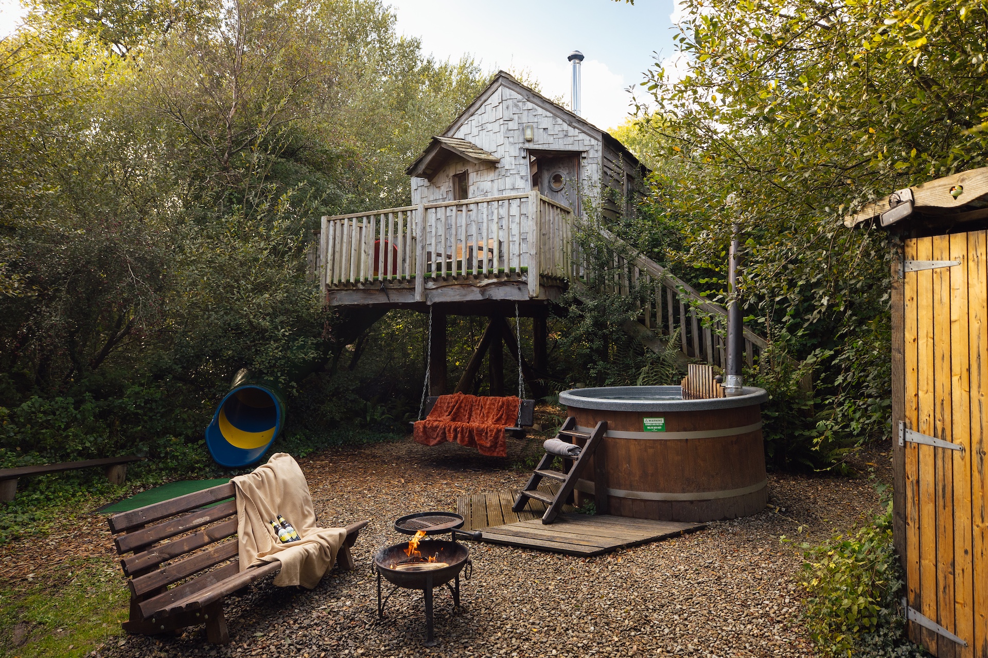 With a private garden, eco wood-burning hot tub, campfire, star gazing bench, fire pit, BBQ and fully-equipped covered outdoor kitchen, there's so much more to the treehouse experience than just cosy accommodation.