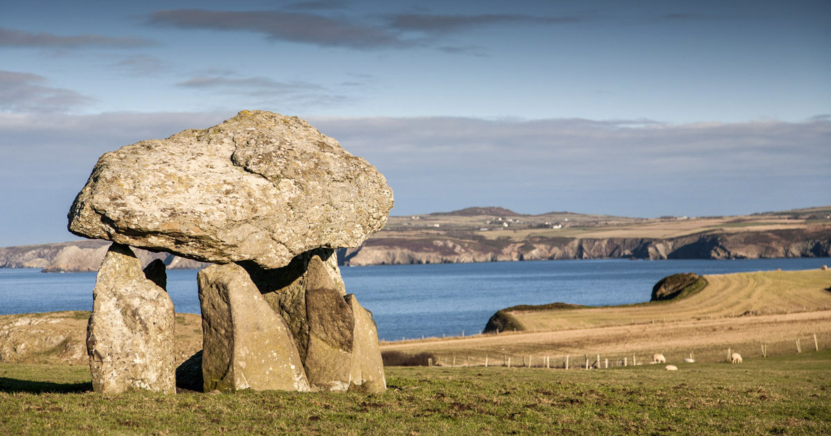 In a dramatic clifftop location just outside the pretty port of Abercastle stands a Neolithic burial chamber known as Carreg Samson; the namesake of our beautiful Carreg hideaway. The name translates as 'Samson's Stone' and refers to the legend that St Samson placed the huge capstone in place using just his little finger.